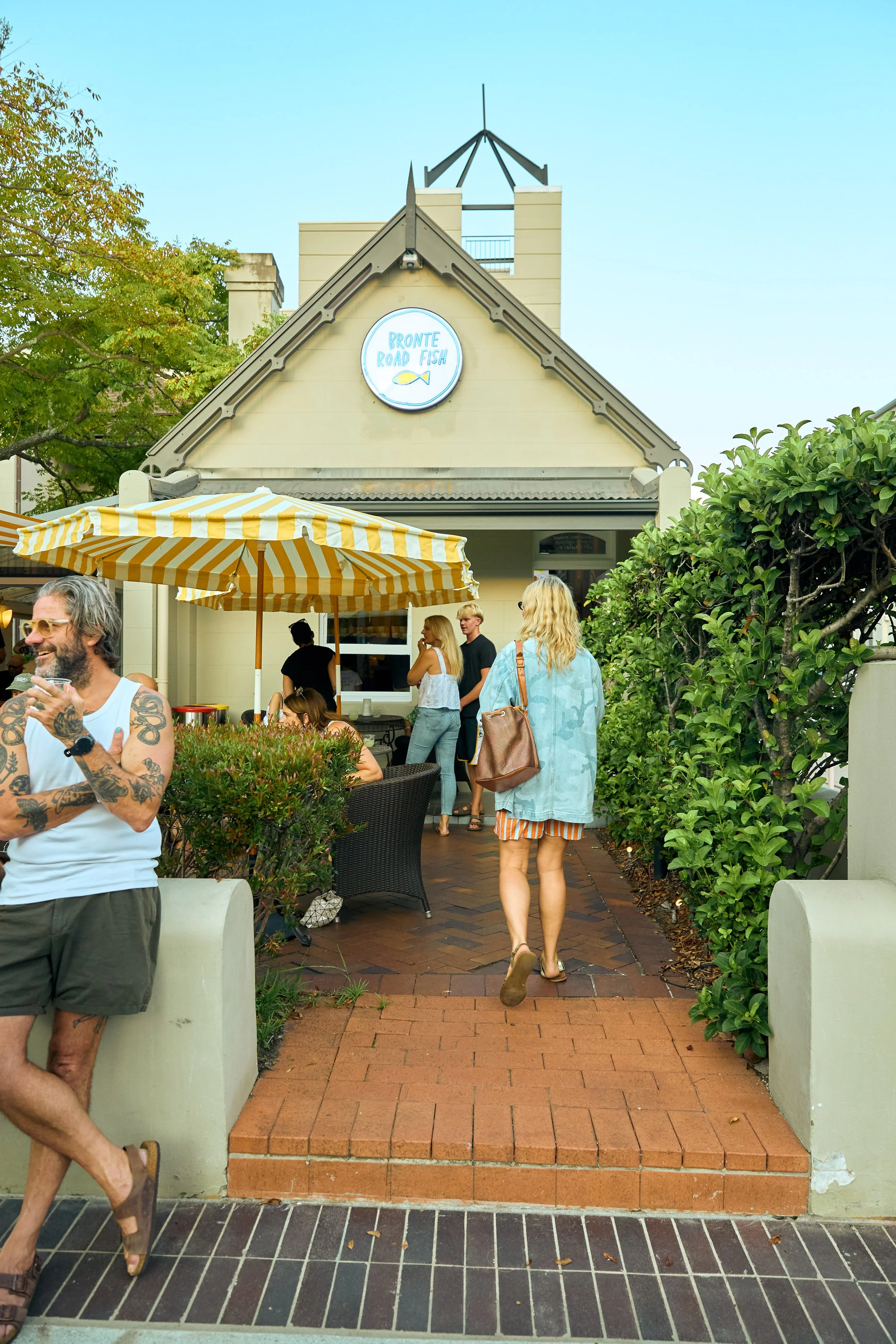 Just up the hill from Bronte Beach, in Charing Cross, you’ll find us in a small cottage with a sunny courtyard shaded by a yellow-and-white striped awning. Settle in for a fish burger and a margarita slushie, pop past for takeaway, or drop by the soft-serve window after a dip.